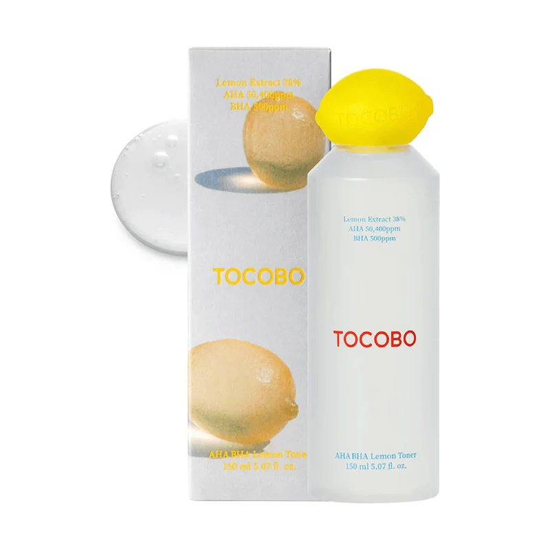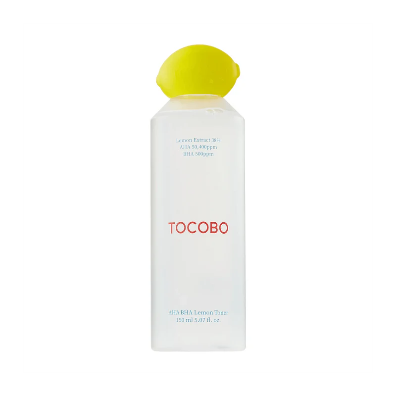 El AHA BHA Lemon Toner de TOCOBO es un tónico facial formulado para exfoliar suavemente, iluminar el rostro y mejorar la textura de la piel. Combina AHA y BHA, ácidos que eliminan células muertas y limpian los poros, con vitamina C para aportar luminosidad y combatir el tono apagado de la piel.