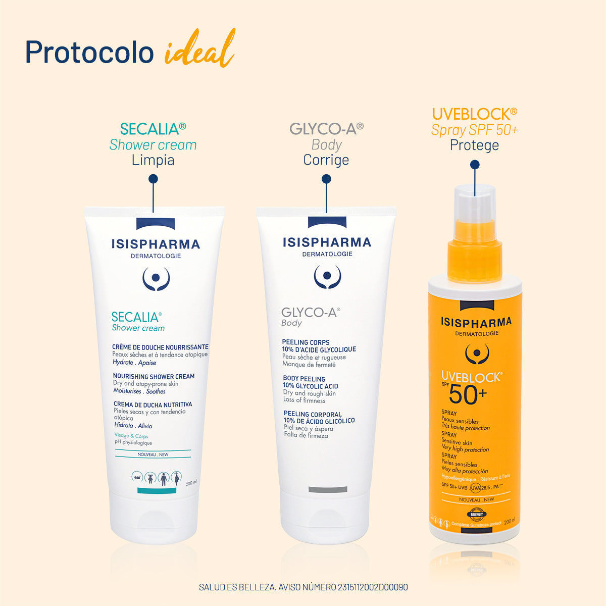 Su atomizador de amplio espectro llega a todas las partes del cuerpo (espalda y piernas); su textura ligera facilita su aplicación en el rostro y cuello. Es un producto no graso y no comedogénico, fácil de aplicar, resistente al agua y no deja residuos blancos tras su aplicación.