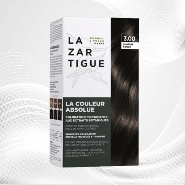 Lazartigue El Color Absoluto – Coloración: 3.00 chestnut es una coloración permanente con extractos botánicos y concentrada en pigmentos profesionales para una expresión absoluta de color y brillo. Su fórmula, enriquecida con leche de arroz y aceite de reina de los prados, se combina con un sérum precoloración y una mascarilla exclusiva para una fibra protegida e intensamente nutrida antes, durante y después de la coloración. Esta coloración cubre el 100% del cabello blanco respetando el cuero cabelludo y la fibra.