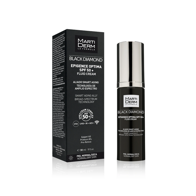 La nueva Epigence Optima SPF 50+ Crema Fluida contiene la misma fórmula que su versión original en ampolleta, pero añade una novedad: una textura fluida en crema ideal para llevarla siempre contigo. Como la ampolla, ha sido diseñada como una fórmula revolucionaria basada en criterios epigenéticos con FPS 50+ y con activos que protegen frente a las radiaciones de un amplio rango del espectro electromagnético: UVA / UVB / IR / HEV (luz azul) / REM (producida por dispositivos wifi, bluetoothâ¦).Â