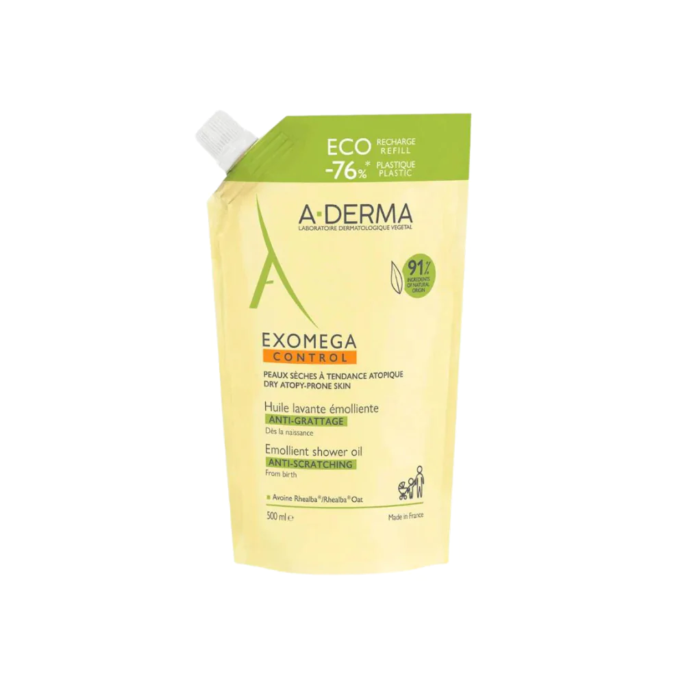 A-DERMA EXOMEGA ACEITE ECO-REFIL 500 ML es un limpiador suave que protege la piel de la tirantez y la sequedad. Calma la sensación de comezón en pieles secas y atópicas. Con su uso, disfruta de una piel más hidratada y sin molestias.
