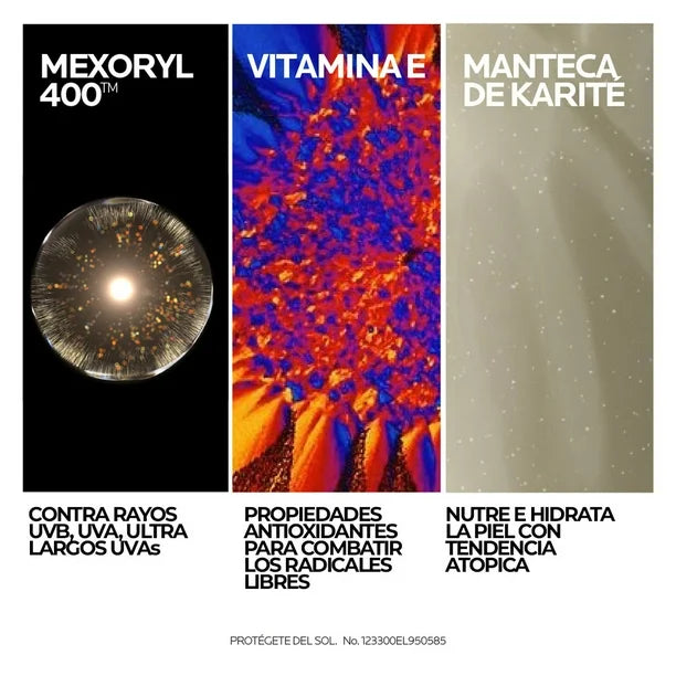 Protector solar dermatológicamente probado, especialmente formulado para la piel sensible de los niños. Ofrece una protección de muy amplio espectro (UVA + UVB) que ayuda a proteger la piel frente a los daños causados por la radiación solar.